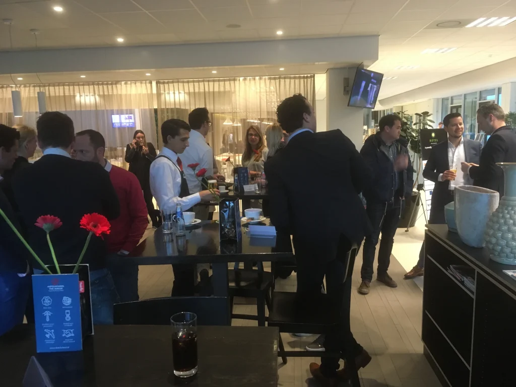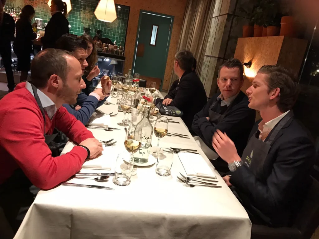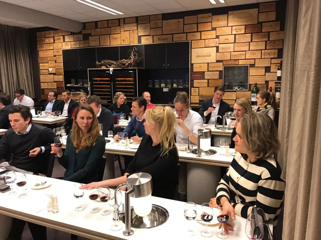 Na een fijn ontvangst bij de entree van de Hotelschool The Hague in Amsterdam werden wij alle naar het wijnproeflokaal geloodst. Na een mooie introductie over wijn en het herkennen van de eigenschappen kon het proeven beginnen.